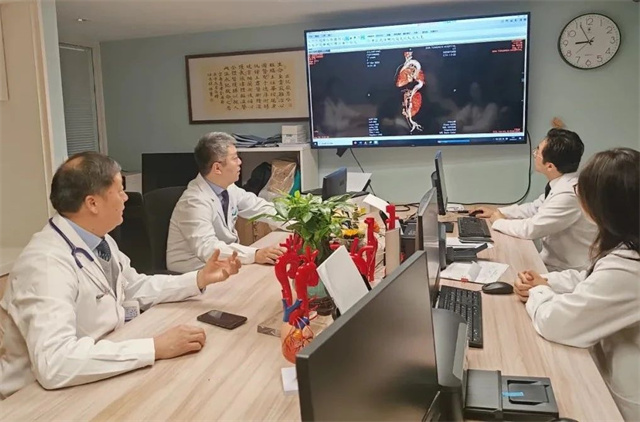 次日清晨,心外科团队、麻醉手术科、SICU开展了多学科会诊,讨论治疗方案。为了在保证治疗效果的同时,降低手术带来的创伤和并发症,多学科专家一致通过微创胸主动脉覆膜支架置入术的手术方案。
