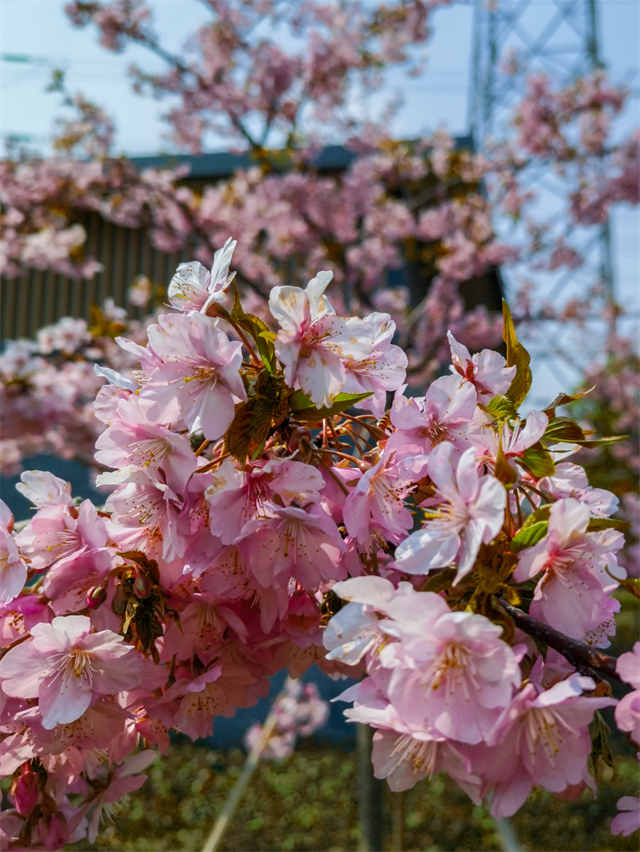 桂江路中环绿廊的早樱已经盛开,粉白的花瓣在春风中轻轻摇曳,仿佛在低语着春天的秘密。花朵儿紧紧挨着,宛如一片粉红的云彩落入人间。行人经过,都忍不住停下脚步,驻足欣赏,用镜头记录这美丽的景色。