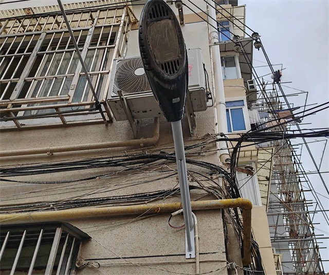 比如,这处“歪脖子”路灯,就在居民的一间卧室旁边,装好亮灯后,居民反映影响夜间休息,经过居委会、居民以及施工方的现场沟通,就调整了路灯的角度,尽量降低对居民生活的影响。