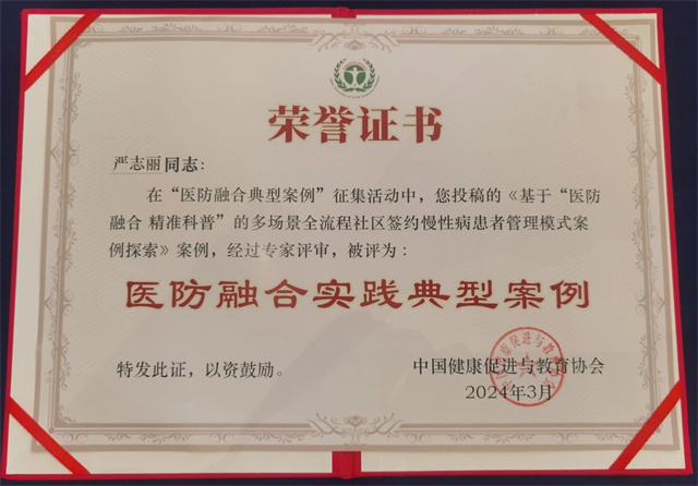 前不久,一篇《基于“医防融合 精准科普”的多场景全流程社区签约慢性病患者管理模式案例探索》被中国健康促进与教育协会评为“医防融合实践典型案例”,而这个案例讲述的,正是区疾控中心庄建林名医工作室与新华、仙霞、北新泾等社区卫生服务中心签约合作,探索“医防融合 精准科普”工作的典范。