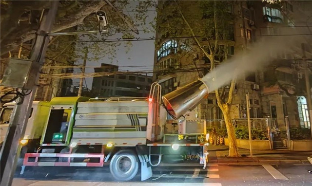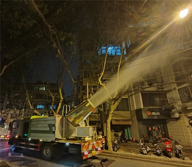 夜间,长宁这些马路上开来了“风炮车”“水炮车”……