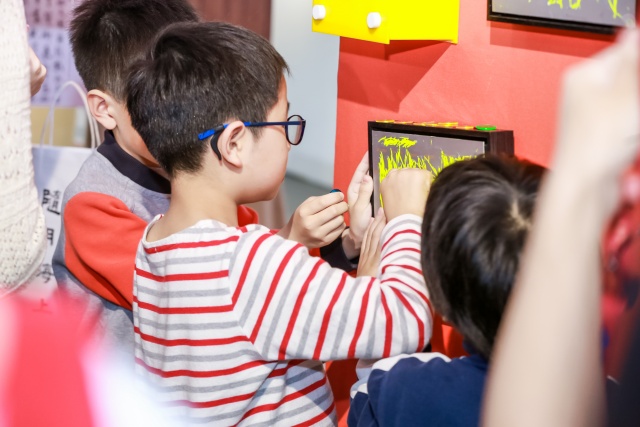 和许多静悄悄的当代展现场不同,在现场,观众们不时发出会心的微笑,有人在看似传统的篆刻作品里,找到了摇滚歌词,有观众在数字作品前讨论要使用哪些“咒语”(AI创作中的关键词)。“找梗”拉近了作品与观众的距离,不少人在装置作品《破》前排起队,作者鼓励观众刮破作品表面,不断显露出的是中外文学经典中对于“我是谁”的不同阐释,在“破坏”的过程中,人们不断思索对自我的定义。