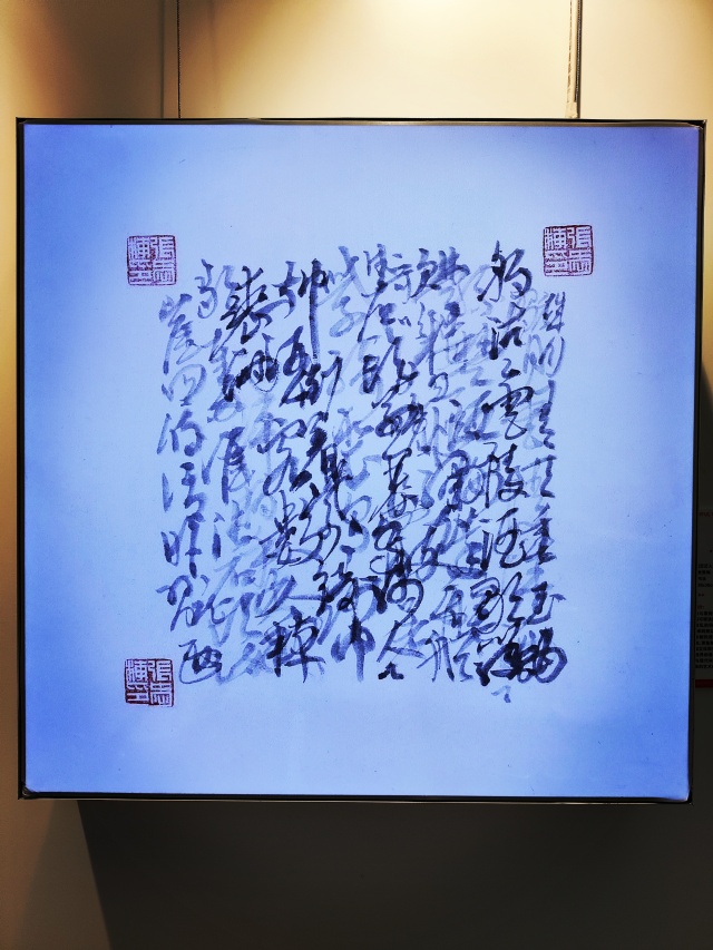 展览现场,许多“素人”的作品也让人惊喜,作者张爱梅,生活中是一名编辑,她融合草书和篆刻,创作了一幅“二维码”,近看,“码”是王宠的《李白古风诗》诗句,离远一些,以黑白格子形式呈现的书法“二维码”立刻凸显出来,边角则采用可释读的作者印章。这种跨界的尝试和探索,将传统艺术与现代科技相结合,为观众提供了一种全新的艺术体验和文化享受。