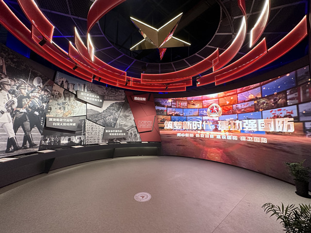 以“筑梦国防向复兴”为主题的展厅,总体划分为国防与民防两大主题区域,以纸飞机为线索贯穿始终,从一张张纸片到纸飞机,再蝶变至J20等现代武器装备,随后进化为翱翔于未来的纸飞机,最后化作和平鸽,寓意着从建军到强军的浩瀚征途,整个参观过程中,讲解志愿者们对应着不同形态的纸飞机,为大家讲述他们各自的国防故事,将全民国防教育理念以最形象生动、零距离的方式呈现在大家眼前。