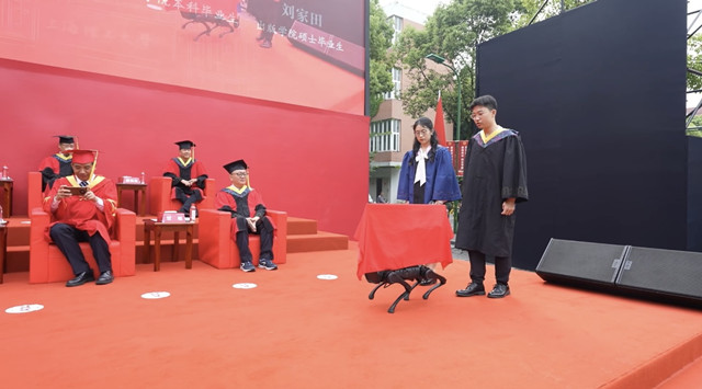 今年,上海理工大学收到了一份来自2024届全体毕业生的毕业礼物,这份礼物可谓是“理工味”十足,不仅吸引了在场师生的目光,也为毕业典礼增添了浓厚的科技感。