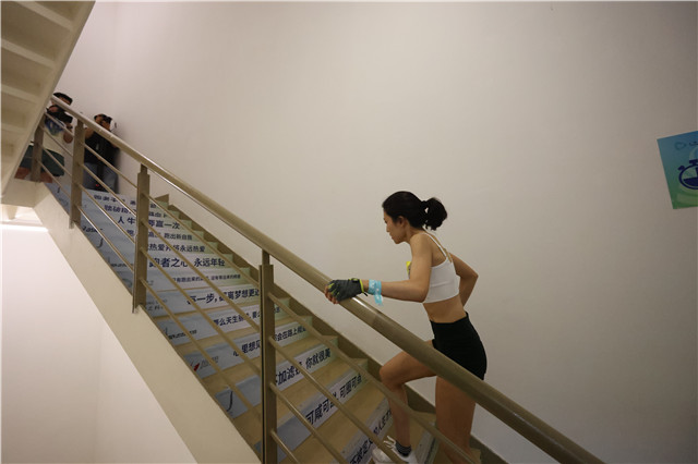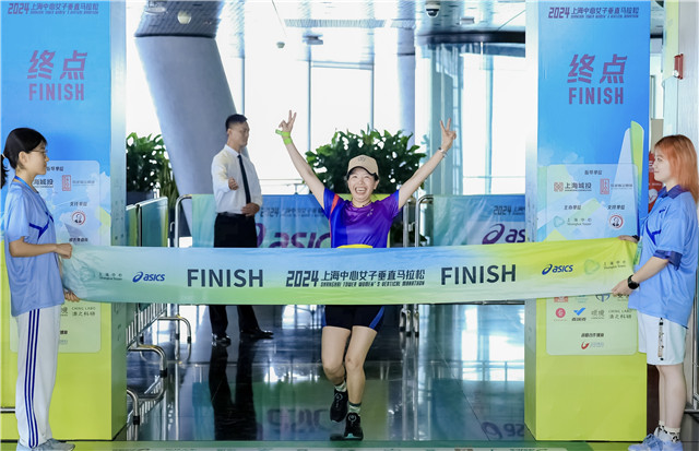 早上8:30,第一批参赛选手正式开跑,赛道为大厦的79层至119层,每层赛道上也都有加油的口号:“跑者之心,永远年轻”“每一步,都离梦想更近”“我热爱并将永远热爱”……每一层台阶都鼓励着参赛者再往上迈出胜利的一步。就在这个垂直的赛道内,巾帼女将们挑战着自己的极限,勇攀巅峰。在紧张刺激的比赛中,女选手们展现了出色的体能和坚韧不拔的精神风貌,赢得了现场观众的阵阵喝彩。最终,选手职欣然以7分01秒的成绩夺得第一,第一次参加上海中心垂马的她表示这是个意外之喜,“自己也没想到。”而来自杭州垂马的冠军选手乐青华以7分09秒的成绩获得亚军。