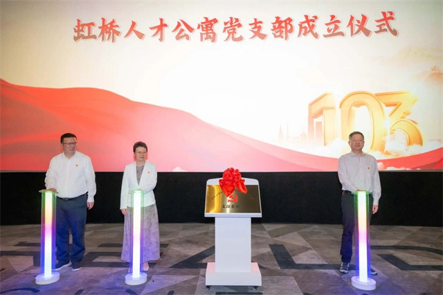 7月1日,在庆祝中国共产党成立103周年的喜庆日子,申城规模最大的保障性租赁住宅项目——虹桥人才公寓迎来具有里程碑意义的时刻,虹桥人才公寓党支部和长宁区首个人才公寓党群服务中心正式揭牌启用。从此,该新型居住形态的社区共治自治有了“领头雁”和主心骨。