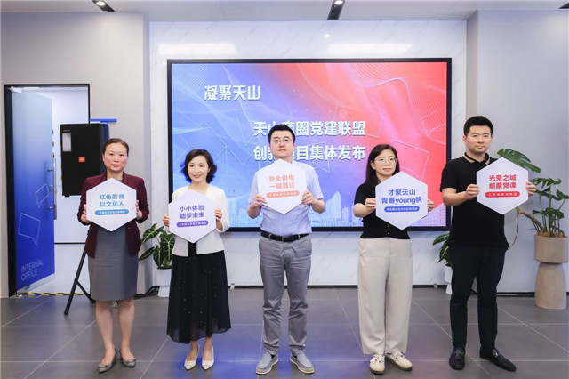 作为宁聚里·天山荟党群服务站启用的首场活动,“凝心聚力促发展 奋楫笃行谱新篇”庆祝中国共产党成立103周年主题活动上,发布了“天山商圈人才会客厅”项目、天山商圈党建联盟创新项目、“天山会主理人”服务项目,计划以项目化的运作方式,不断夯实“楼门口”“家门口”服务体系建设。此外,还成立天山路街区“小个专”党建联盟,不断壮大社区报到党员、志愿者、“社情民意气象员”队伍,并向老党员代表颁发“光荣在党50年”纪念章,全场共同重温入党誓词。