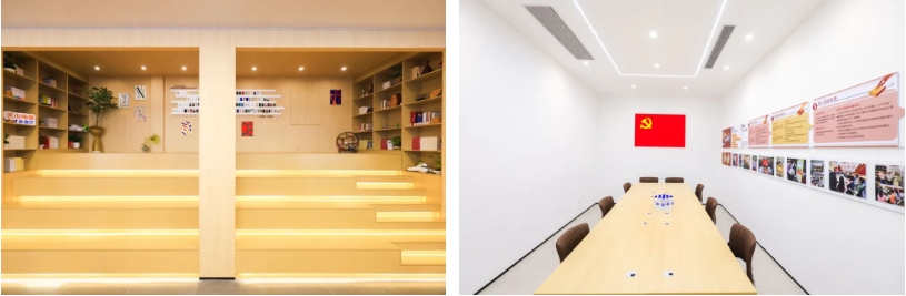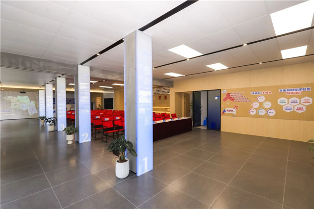 宁聚里·天山荟党群服务站位于天山路932号,总面积约500平方米,其中划分了共享活动区、组织生活室、法律咨询室、休闲阅读区、企业洽谈室、综合服务区、24小时政务服务区等多个功能区域,可满足企业白领和社区居民多元需求。不仅如此,服务站内还设置有充满科技气息的石墨烯互动墙、写有天山路前世今生故事的绚丽立柱,时尚感、科技感与历史气息巧妙交融,让这处空间更具“时尚商圈 活力天山”的特色。