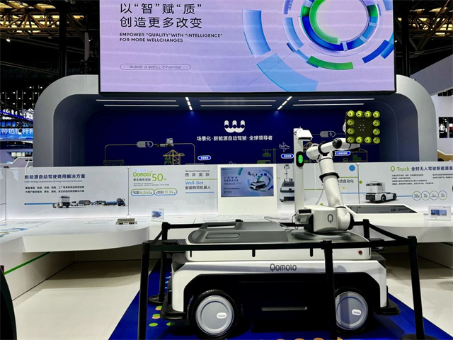Q-Truck拥有充电与换电两个版本,可充、可换、可能源升级,为不同场景提供灵活的解决方案。此次展出的智能换电版已于近期进入赛力斯汽车智慧工厂,承担厂内运输作业等重要任务。该车采用以箱代库、甩挂运输模式,将集装箱立体库和车体等硬件设施有效融合,与生产线节奏精准匹配,24小时自动化运行,还可智能规避障碍,高效作业,将智能、绿色两大关键词贯穿于工厂生产和流转环节,还具备快速部署、拓展的能力,为全新生产范式的打造提供了范例。