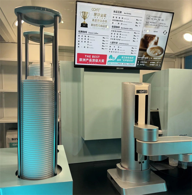这款机器人咖啡亭占地面积不足2.5平米,使用先进的机器臂、人工智能技术、先进的算法新鲜现磨制作,顾客能自选和定制个性化口味(包括浓度、甜度、温度、饮品工艺、浇头、风味、杯型可选),使用两种鲜奶和两种精品咖啡豆,一次加料能满足制作300杯饮品,不仅能现磨咖啡,还能新鲜制作西式奶茶、日式抹茶、巧克力饮品、乳饮五大类50多种口味。