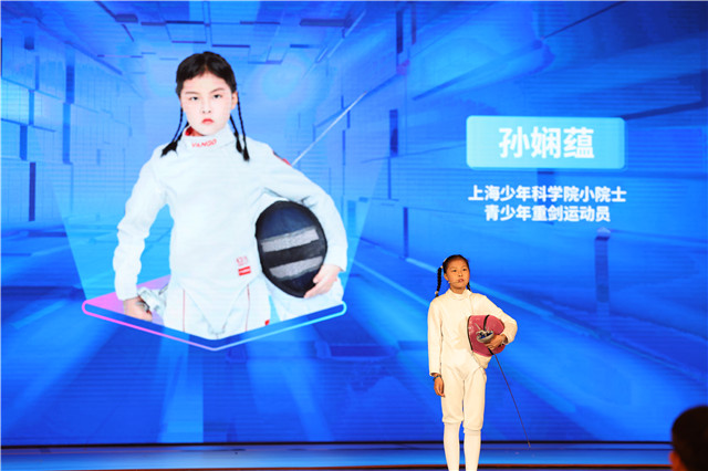 AI已经融入击剑运动中!“青春有约”环节,身穿击剑服的青少年重剑运动员孙娴蕴走上舞台,不仅介绍自己学习的重剑运动,还介绍了自己的课题——《一种新型进阶型电子击剑靶》,孙娴蕴凭此获得第二十一届上海少年科学院“小院士”称号。她介绍,这款装置共有9个刺点,设有自由练习模式、多刺点练习模式、依次亮点练习模式,让她能在家就能练习反应能力和刺击准确性练习。“科技改变未来,我还会继续改进电子击剑靶装置,帮助运动员更好提升技术。”