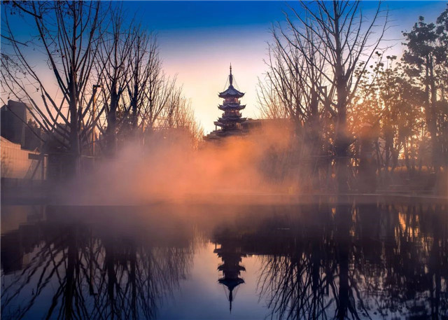 待清风拂过,荡起一池涟漪,古籍中记载的龙华八景之“秋江塔影”优美意境,便立刻“浮现”在你眼前。