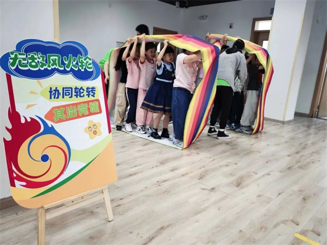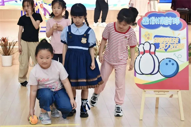 首先进行的是火炬传递比赛,小学员们手拿各色接力棒,往返传递和交接象征“火炬圣火”的红色杯子,既锻炼了他们的协作能力,也让他们感受到了比赛中团队精神的重要性。随后的乒乓运球比赛中,小学员们持牌上场,小心前进的同时,还时刻注意保持乒乓球的稳定性,提升了他们平衡与速度相互配合的能力。此外,无敌风火轮、飞盘九宫格、击打保龄球等比赛也火热进行,小学员通过相互鼓励、共商策略,在比赛中培养信任与默契,收获胜利的喜悦和能力的提升。