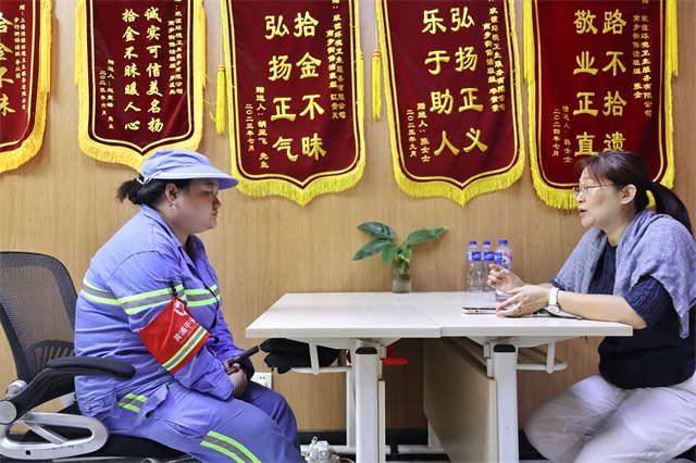 这几日,上海红色高温预警高悬,频频刷出新高,无疑也为韦素素这样的户外现场作业增加了难度。“作为00后年轻人,我总体感觉工作强度可以胜任。在户外开展保洁,每2小时有15分钟的休息时间,早饭和午饭均有休息时间,补水班组也会到岗位上为我们送上盐汽水,提醒我们可以灵活掌握工作强度,避开中午高温时段的‘硬’作业。”韦素素说道。