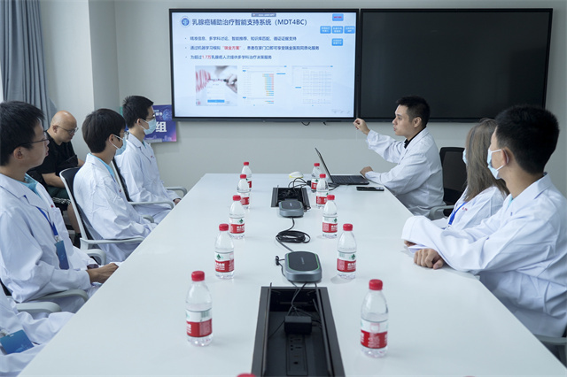 更有趣的是,病区内的智慧医疗服务机器人通过自动驾驶、视觉识别和语音识别技术,能够自主移动,为患者提供入院宣教、疾病科普等服务。医生还提前将2000多个乳腺疾病相关问题输入机器人,患者可以自助查找自己关心的问题,医患沟通效率因此得到了显著提升。