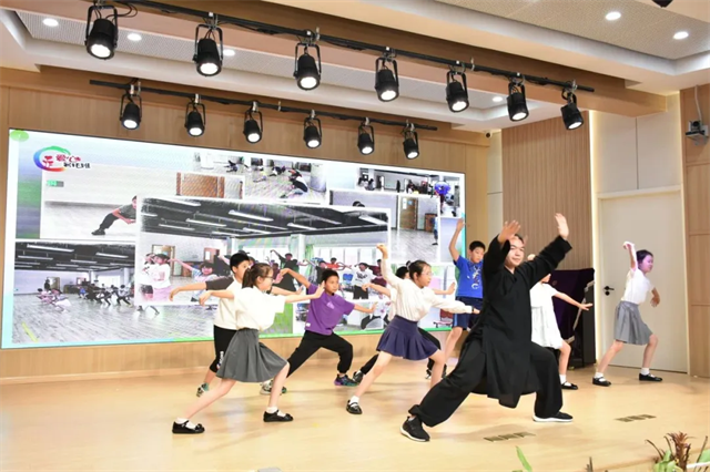 “T0708次‘追光号’列车,满载着孩子们的梦想驶入终点站。”结业仪式开始前,一则视频带大家回顾了爱心暑托班发生的点滴故事。随后,小学员们陆续走上舞台,进行武术、中医药文化、舞蹈秀、歌曲演唱和散文朗诵等表演,展现他们从“五光课程”中收获的知识和技能。