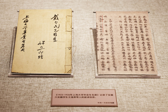 策展人中共一大纪念馆陈列研究部助理馆员林得菊指着第一部分“星火燎原”聚焦建党和大革命时期的展板告诉记者,当时,六安进步青年在上海接受马克思主义思想的启蒙,从此走上革命道路,参与革命事业,将革命的火种带回家乡六安,在巍巍大别山掀起大革命风暴的历程。此次展览展出了中共一大纪念馆馆藏的一本《1923-1926年上海大学毕业生名册》,名册里,记录了安徽六安籍学生王逸常等人的就读信息。