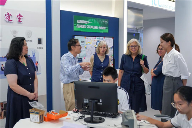 为进一步了解徐汇区STEM教育开展情况,当日下午,代表团前往上海市位育中学。位育中学校长王亦群带领代表团一行参观了学校芯片科技教育学习体验中心、科学教育创新学习中心等,并详细介绍了学校的STEM教育特色。