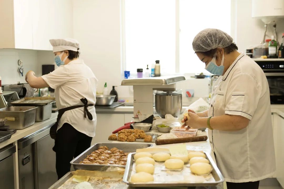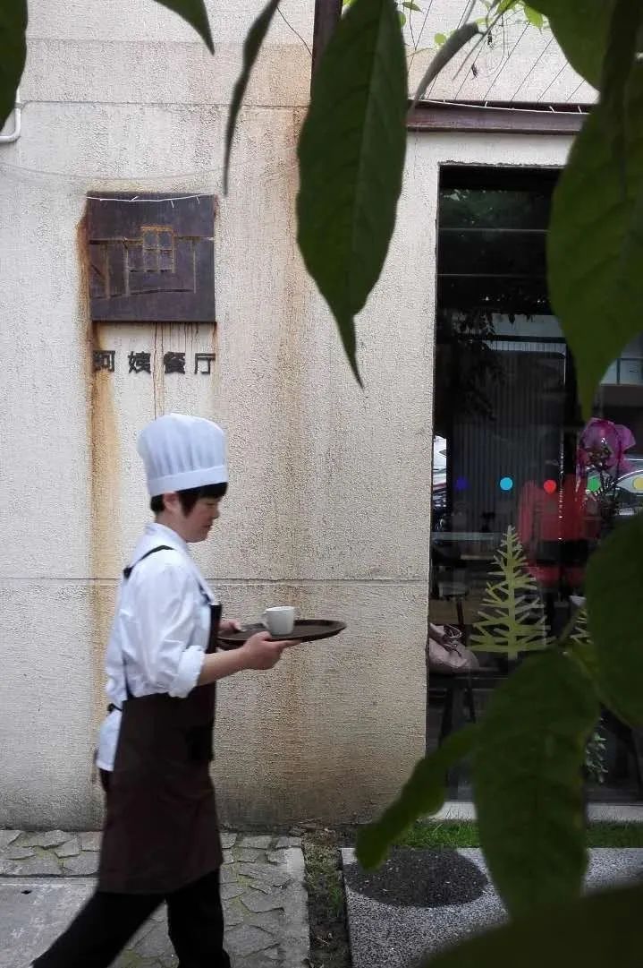 隔绝外部的喧闹,在这座安静的空间里,还能闻到香醇的咖啡味道。记者发现,做咖啡的不是熟悉的年轻面孔,而是一位戴着白色厨师帽的阿姨。再往后厨一瞧,七八个阿姨都在忙着准备午市餐食。阿姨们相聚于这家餐厅,而这里也被亲切地唤作“阿姨食堂”。