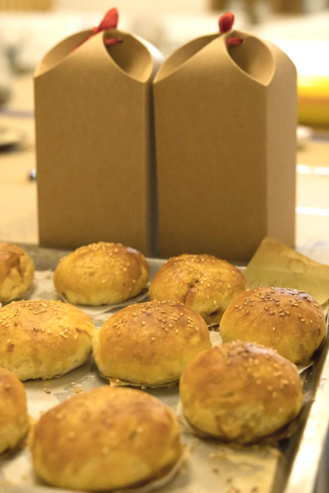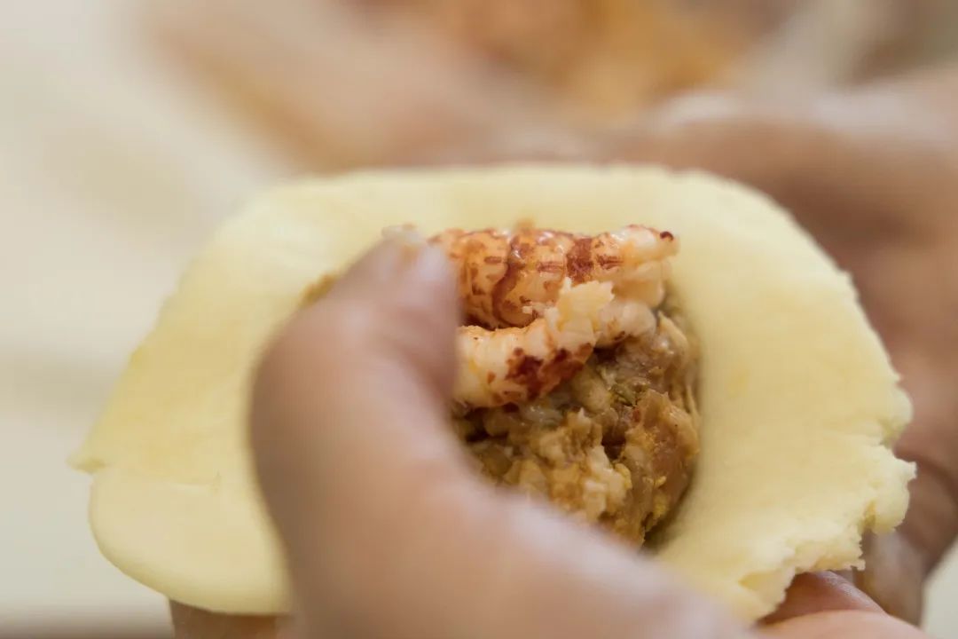 餐厅二楼专门设了一间制作月饼的点心室,一个个圆润饱满的月饼都是刚烤出来的,金色酥皮令人馋涎欲滴,有鲜肉馅的,也有小龙虾馅的,其中还加了少许鲜嫩的莲藕,咬一口下去香脆而不腻。