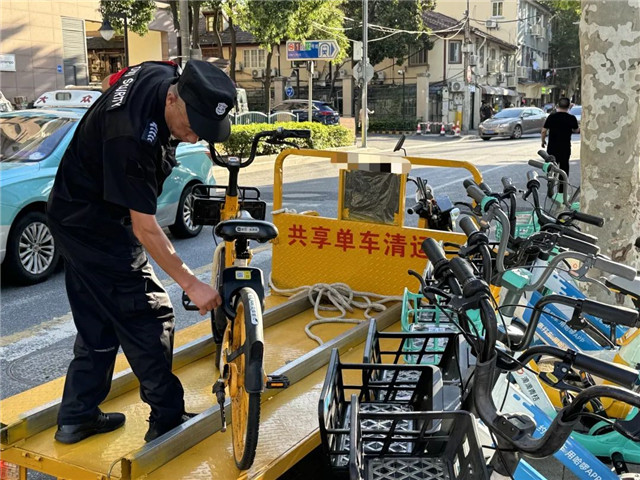 针对共享单车停放量过大占用停车位等问题,街道城建中心每天安排非机动车管理力量及时清运超饱和的共享单车,最大限度为市民停放非机动车腾挪空间。