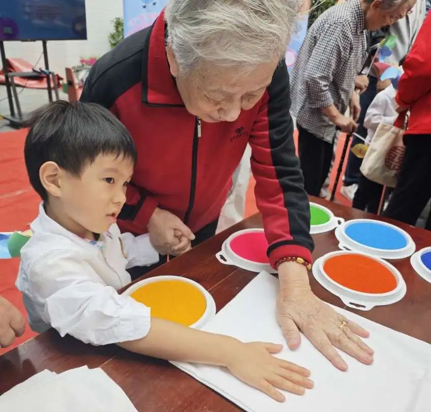 通过共同制作玩偶纸风车、手印布袋等手工活动,老少两代人在温馨愉快的互动中把良好卫生好习惯铭记于心。