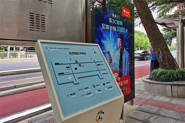 图为虹桥路虹许路公交站盲文无障碍指示牌