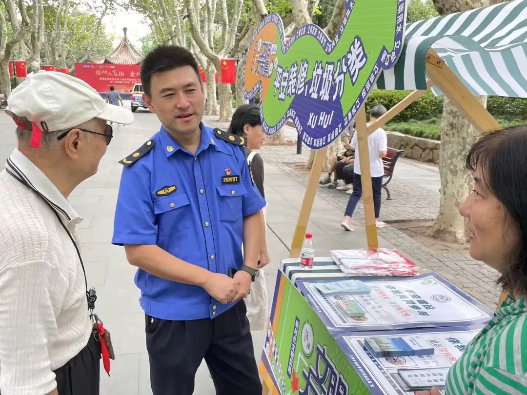 活动当天,湖南街道综合行政执法队、市场所、城建中心、总工会等多个部门也参与了设摊宣传,搭载便民服务进社区。街道综合行政执法队以“平安装修、垃圾分类”为主题,结合居民日常生活中比较关注的垃圾分类、房屋装修等事项,通过法律宣传、案例分享、现场咨询、便民服务等多种形式,交流与分享执法人员在参与社区综合治理过程中的一些心得及治理经验,向前来咨询的居民朋友们讲解日常生活中所产生的生活垃圾如何进行正确分类、小区内为何禁止随意堆放、倾倒装修垃圾、如何识别房屋主体及承重结构等小知识,倡导楼道不堆物,并阐明违法行为可能引发的危害性及所应承担的法律后果,引导居民朋友们自觉守法,动员大家积极参与日常监督。