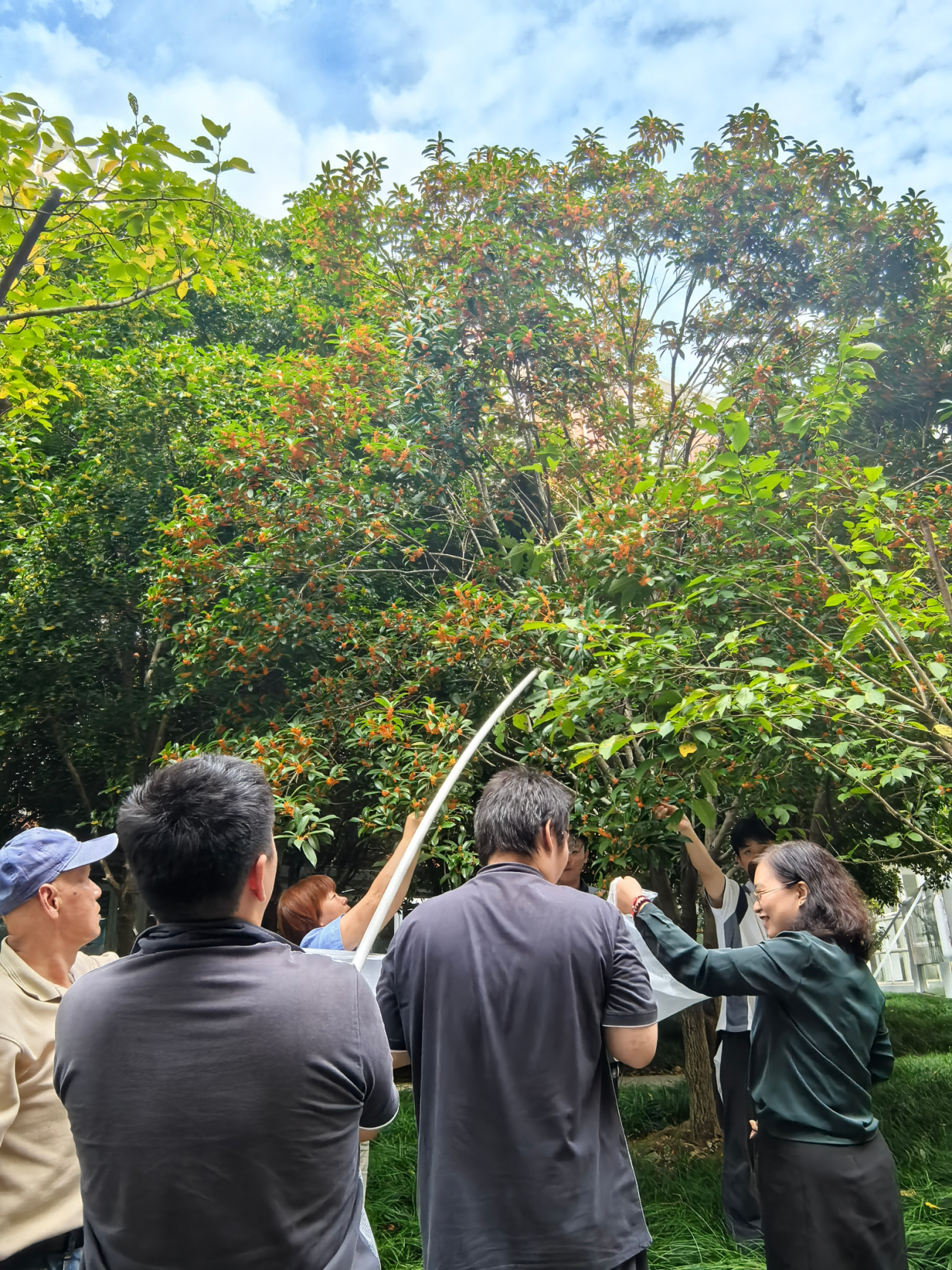 华师大附属天山学校的学生们开展桂花采摘活动,在实践中了解桂花的相关知识与生长情况。