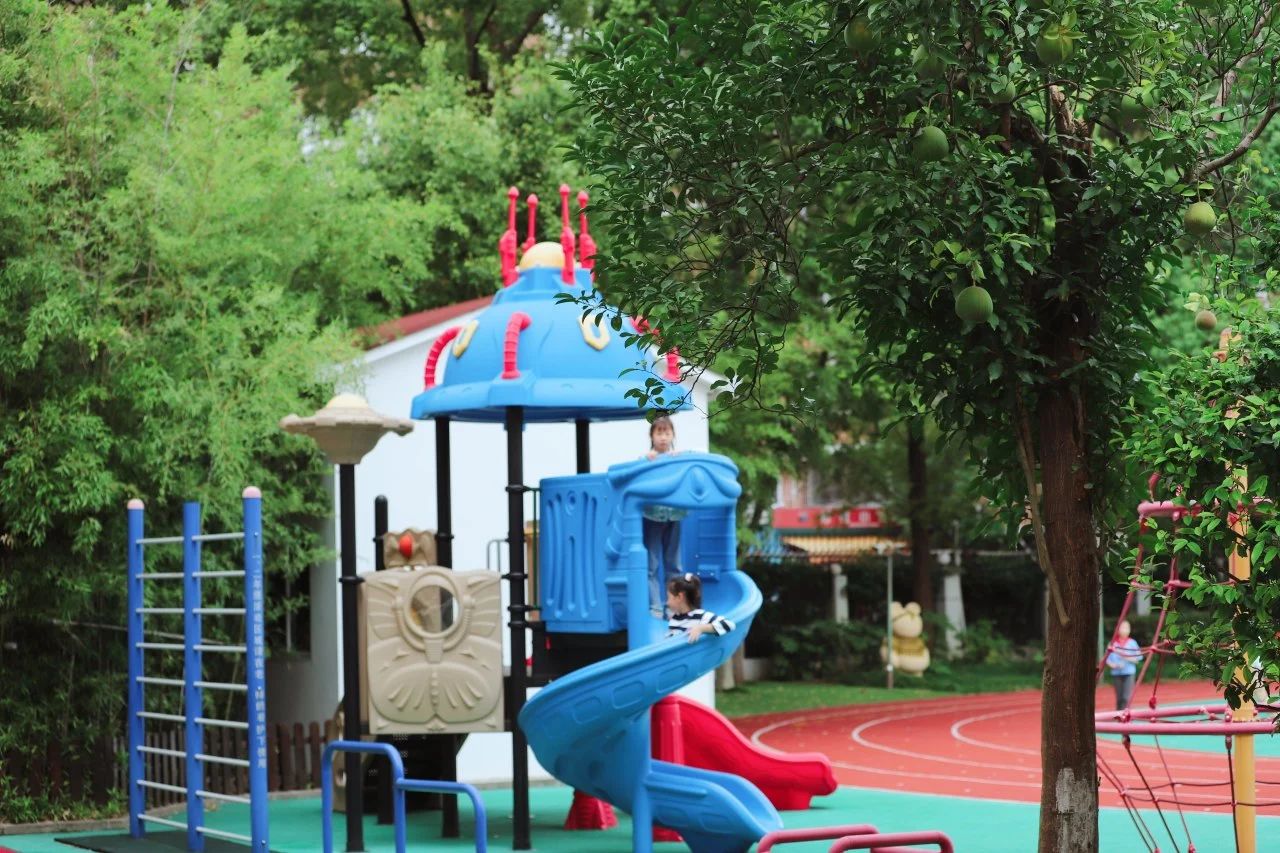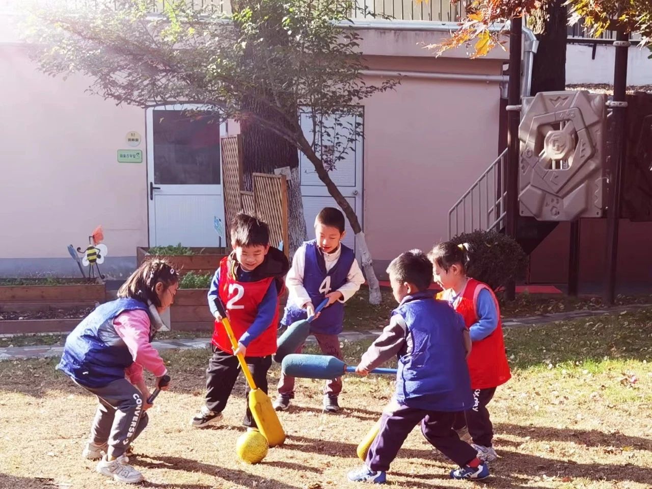 秋日的暖阳中,兆丰幼儿园的孩子们追逐嬉戏,上演一场“球逢对手”的戏码。