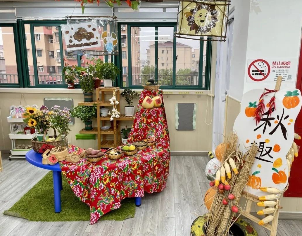 北新泾第三幼儿园环境布置一新。孩子们的树叶作品与秋景相映,尽显童趣与美好。