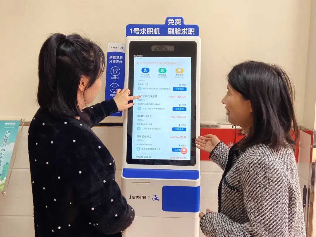 据介绍,作为上海市“15分钟就业服务圈”信息化平台的载体,“1号求职机”能够依托支付宝、钉钉的真实数据,让求职者通过刷脸登录、身份核验、确认信息三步,即可创建简历。对于部分不擅长使用电子设备进行线上求职的人群,简单的三步登录,帮助他们拓宽了求职之路。同时,求职机平台可以通过大数据算法,优先推荐5公里范围内的招聘岗位,精准匹配周边楼宇企业与求职者双方的需求。