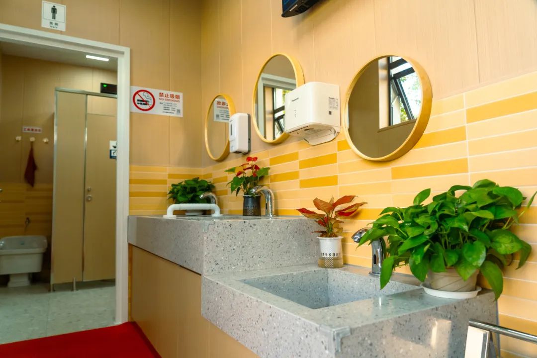 特别是注重人性化设计,安装应急呼叫、张贴温馨标识、提供热水洗手,更好满足市民多样化如厕需求。同时,在有条件的厕所门口布置休憩座椅方便来往市民。