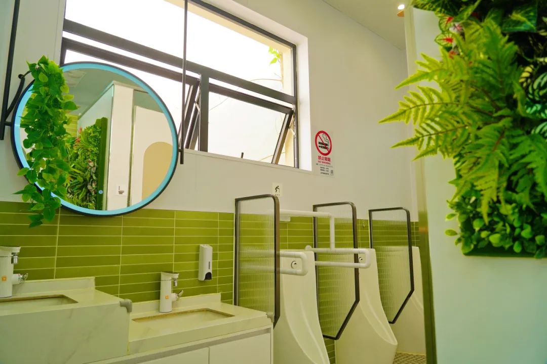 本次改造的公厕项目中,还通过巧构思在小空间中做出大文章。每一座公厕的特点都被单独挖掘,重新设计布局,细化无障碍坡道线路和坡度设计,为儿童、老人定制便民设施,有效建成一批第三卫生间。