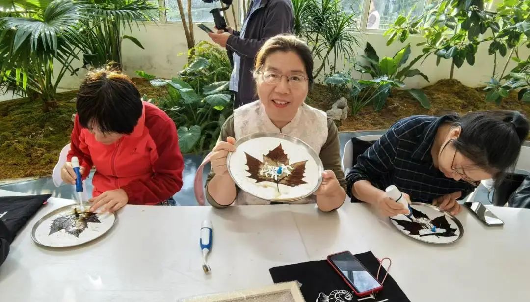 此外,活动特别邀请了长宁区非物质文化遗产叶雕技艺传承人李亚非,他精心挑选了中山公园悬铃木在秋冬季自然脱落的叶片,这些叶片经过他前期的细心清洗与多道工序处理后,变得适宜雕刻。在李亚非的指导下,市民们亲身体验了叶雕,不仅亲手制作出独一无二的叶雕作品,更深刻感受到了这一传统非物质文化遗产的独特魅力与深厚底蕴,激发了大家对传统文化的浓厚兴趣与热爱。