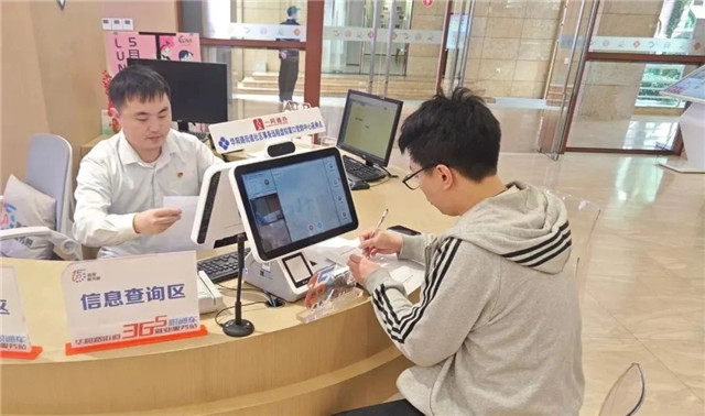 “您好,我想给儿子参加2025年度城乡居民医保”。”欧先生对着屏幕向社区事务受理服务中心工作人员说道。随后,工作人员根据欧先生填写的表格和电子证照件,指导他在信息确认表上签字确认。整个过程不到10分钟,欧先生顺利完成参保登记。工作人员还提醒他,完成参保登记后尽快通过线上、线下多个渠道,完成个人缴费。”