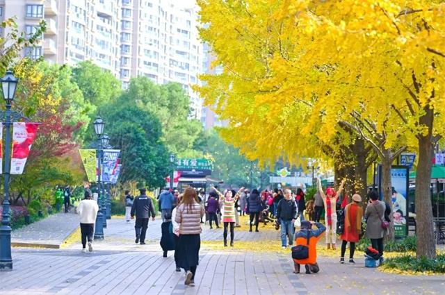 街道依托古北国际社区多元文化的独特魅力,深度挖掘商业与步行街区的共融性、艺术与生活的互通性,聚焦优势资源,在长670米的黄金城道步行街倾力打造“银杏艺术生活季”,实现了人与自然的“双向奔赴”。这一“社区市民大众”的节日不仅推动了国际国内文化交流,也成为长宁虹桥的文旅品牌项目,更成为上海著名网红时尚打卡地。
