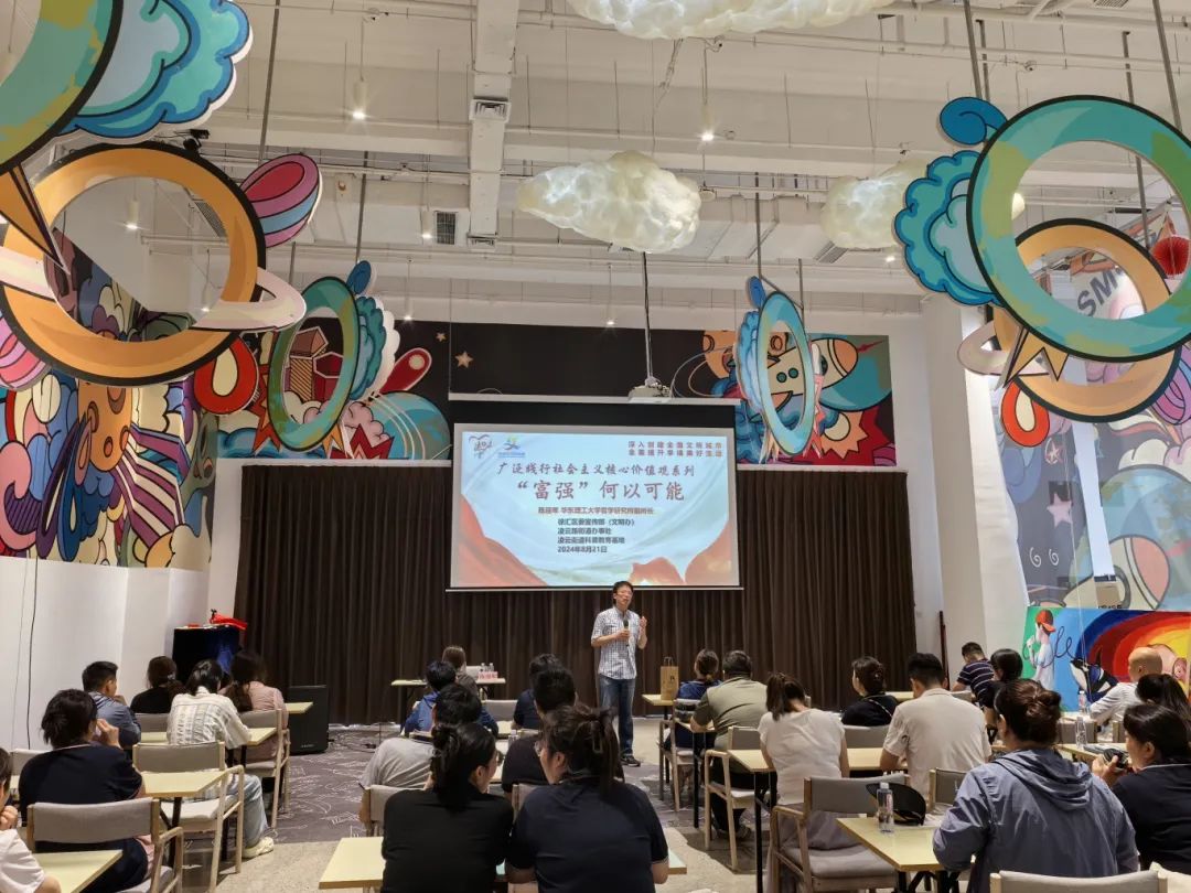 日前,徐汇区漕河泾街道漕溪新时代文明实践点2楼剧场内济济一堂,由区委宣传部(区精神文明办)配送的“思享大学堂”理论宣讲系列课程2024年度收官讲座正式开讲。