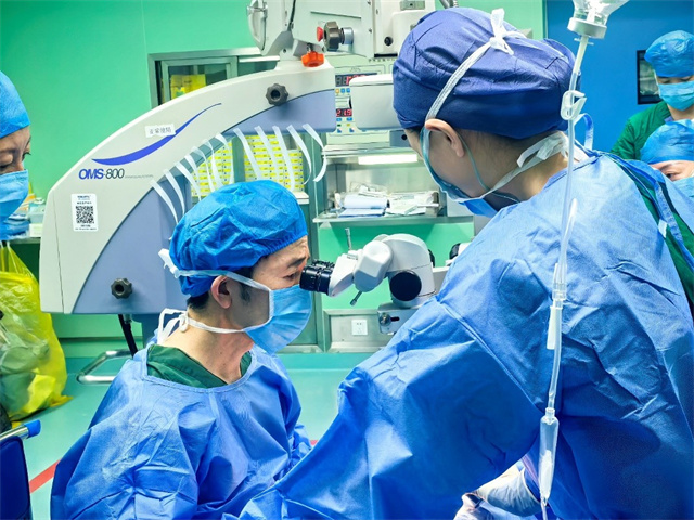 手术当天,在护士长姜琳及护士李莹莹的紧密配合下,周行涛和王晓瑛教授全神贯注地投入手术。他们的每一个动作都精准无误,仿佛时间在这一刻慢了下来。眼内镜植入术,作为一种眼内屈光手术,对手术医生的技术要求极高,需要在微小的眼内空间中,精准地植入晶体,稍有轴位偏差就可能影响手术效果。而在海拔3800米的高原上,还要克服因缺氧导致的身体不适,以及手术设备可能受到的环境影响。但凭借着深厚的专业功底和丰富的临床经验,两位教授仅用短短5分钟,便顺利完成晶体植入。