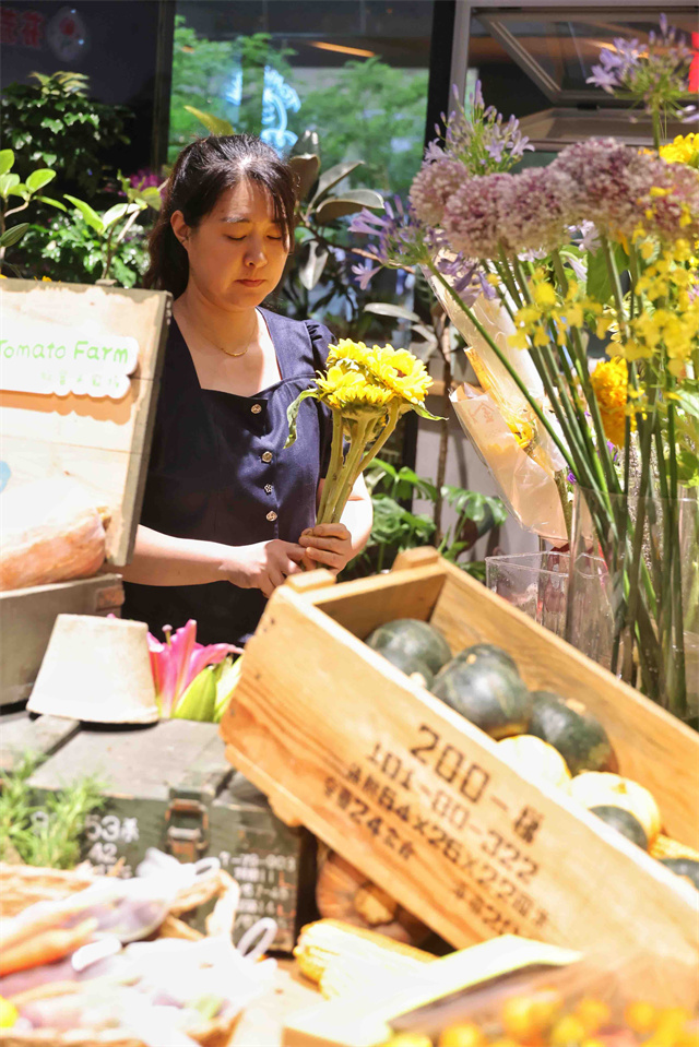 作为芬芳园艺行的分行,虽然铺子的面积和之前那家相比,缩小了整整2/3,但是王芳却需要把2/3的精力都花在这里。“经过这几周的运营,不仅有不少老客人跟了过来,还吸引了许多新客人,尤其是年轻人。虽然地方小了,放不了太多,但是品种更全更精了,卖得很快,我现在每天都要补货。”说着,她随手拿起两束向日葵,“颜色浅一些的叫奶油向日葵,花瓣毛茸茸的叫泰迪向日葵,都算是向日葵里的小贵货了。要在以前,我只会进一些跑量的普货,但是在这里,我发现,社区里的年轻人还是喜欢一些有差异化的产品,即便价格略高,也是可以接受的。”