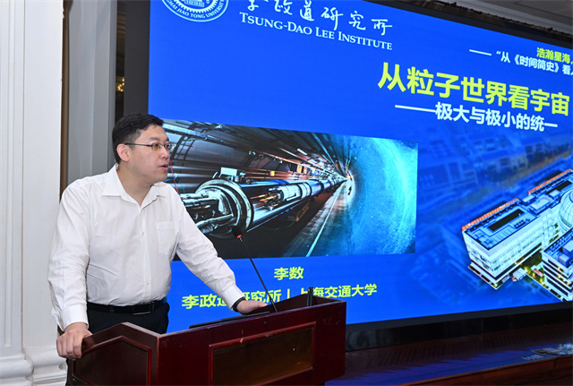 他与公众分享道,在研究所大屏幕上,时常呈现着李政道先生所题的两句勉励致辞:“探索自然的极限,拓展认知的疆界。”探索自然的“极限”显然既包含“无限大”,也包含“无限小”。探索认知的疆界是在不同时空尺度下全维度地共同拓展人类认知的可能性。在浩瀚星海中,人类虽微若尘埃,但对于自然界亘古不变的好奇心却是驱动其探索未知的勇气与毅力的源泉。“我们都希望成为一个自然奥秘的思考者,成为自然法则的破解者。”