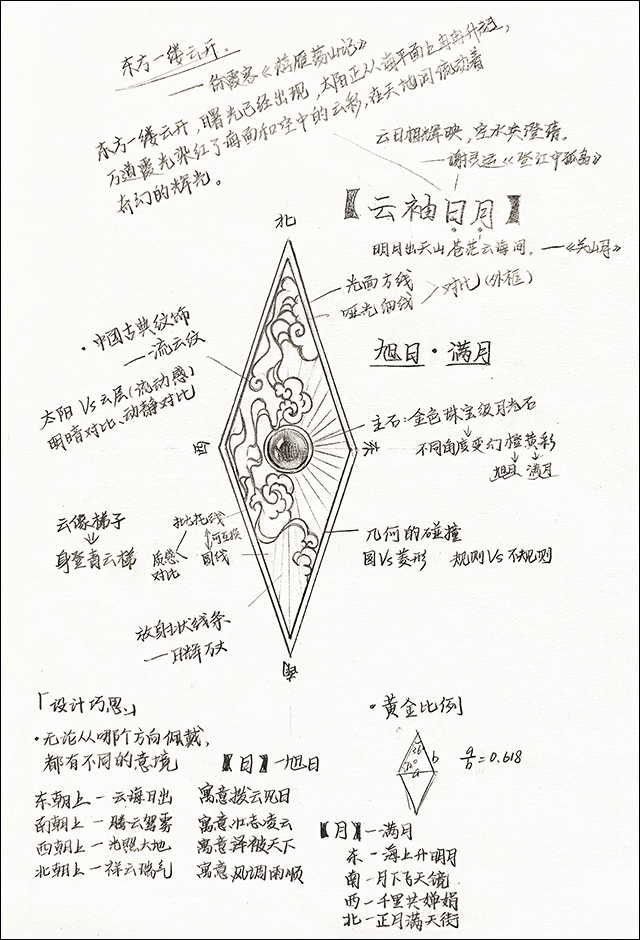 作品《出袖日月》设计草图。