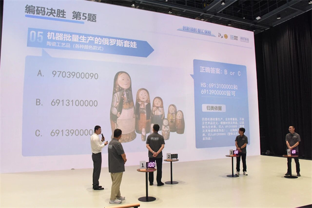 关务知识竞赛环节则设计了“编码决胜”和“大家来找茬”两大实战关卡。选手们围绕艺术品保税通关的关键流程展开激烈比拼,在艺术品材质识别、商品编码归类、税则税率适用、报关单差错辨识等专业领域对答如流,展现了扎实的知识储备与高效的现场应变能力。