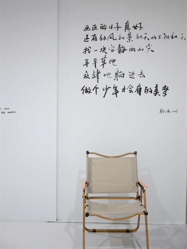 他工作室门口有个大厨房?,这也是他对艺术生活的补充。在这施展厨艺招待朋友的一方天地,他自持一套人生哲学,“不想跟对吃都不感兴趣的人交朋友”,因为美食是体验生活比较直接的方式。他这阵子除了来往个展,还在筹备着国庆假期在浙江宁波的美食节,他要摆摊现做现卖“富贵肉夹馍”,甚至还打算游说艺术家朋友加入,“放下身段,积攒创作经费”。