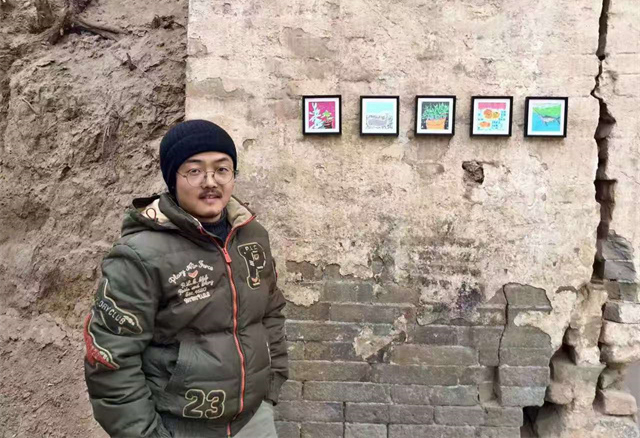 刘小沨的老家在陕西省宝鸡市岐山县。在他出生的村庄有一处建于清代的夯土城门楼,历经风霜侵蚀,早已显出破败的模样。2017年春节,他回家后在城门楼上办了一次小型展览。第二年,他又来了——在铁网上挂了近20张纸本作品,还捎上文创产品。虽然捧场买单的都是亲朋好友,但连续两年举办的小型“个展”还是引起了村民的注意。不久后,城门楼迎来了重修,全部由青砖砌成,后来还有剧组来取景拍戏。