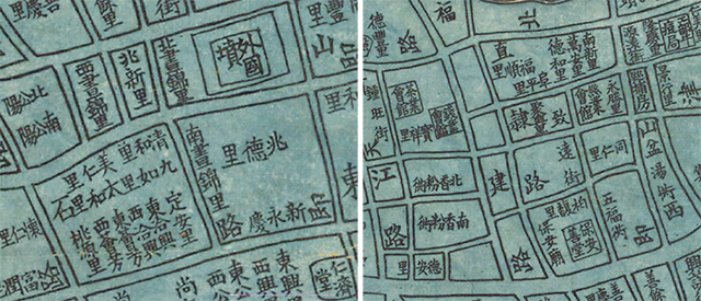 19世纪80年代地图上的昼锦里、直隶路、香粉弄、盆汤弄。