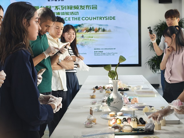 在现场体验过程中,来自不同国家的外籍人士在南北美术馆体验了扎染和冰皮月饼等青浦本地非遗项目和特色手工制作,之后他们玩转皮划艇并游览了青西郊野公园。