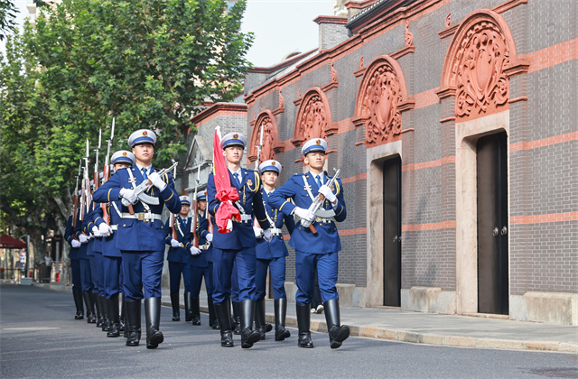 上午8点半,“一大广场国旗护卫队”身着制服,肩扛鲜红国旗,迈着整齐划一的正步走向升旗台。“向国旗——敬礼!”国庆日升旗仪式中,嘹亮的国歌声里,专程赶来的市民群众自发站立,目视着国旗冉冉升起,迎风招展,他们的眼中满是对祖国的自豪与热爱。
