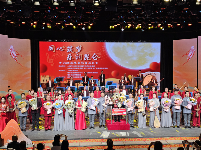 10月1日晚,上海民族乐团演奏家与喀什歌舞团民乐团演奏家们共同呈现“喀什地区庆祝新疆维吾尔自治区成立70周年金秋音乐会”。一首首乐曲以多元交融的乐章绘就民族团结的画卷。音乐亦不止于剧场。随后,艺术家们更深入莎车、泽普、叶城等地,将11场音乐会送到乡亲身边。其中包括在驻喀什部队的演出,演奏家们与1300名官兵共聚一堂,将海派民乐的清新之风,送入边疆军营。